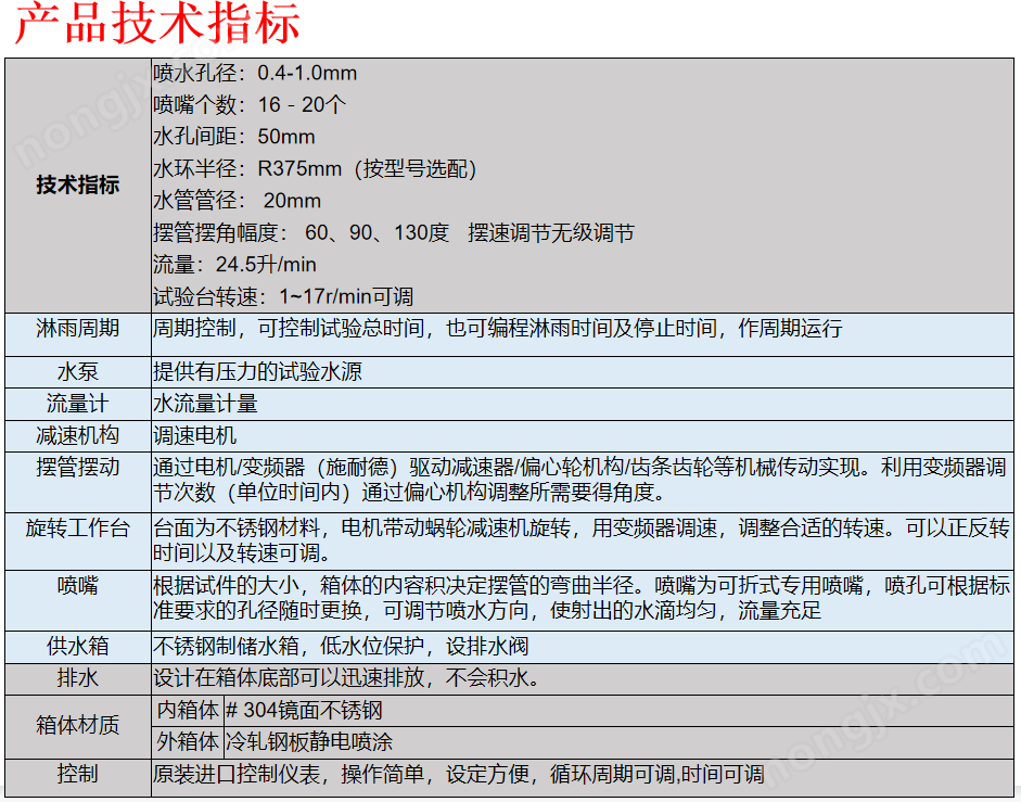 2.适用以自然条件为基础所进行的人工淋雨试验,不带有强风速的降雨,不考虑试样的高温及雨水温度差所引起的大量进水。
